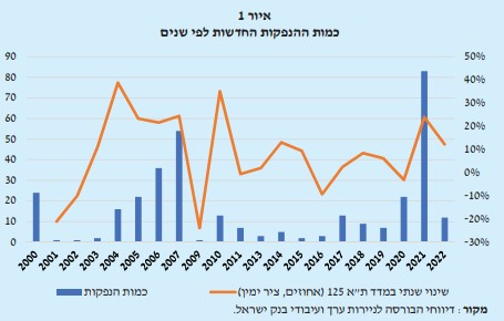 מהמדגם שנבחן (2000-2022) עולה כי ההנפקות בבורסה בתל אביב הגיעו בעיקר בשני גלים: הגל הראשון התרחש בשנים 2004-2007 ונקטע על רקע המשבר הפיננסי הגדול, והגל השני התרחש בשנים 2020-2022, בתקופת היציאה ממשבר הקורונה. שנת 2021 הייתה חריגה בפרספקטיבה של עשרים השנים האחרונות. הגל השני נקטע בשנת 2022, על רקע החמרת התנאים הפיננסיים בעולם והעלאות ריבית משמעותיות בעולם ובישראל. ניתוח של מאפייני החברות מעלה הבדלים בין שני הגלים: ההנפקות של הגל השני מאופיינות בשיעור גבוה וחריג של חברות הפסדיות ביחס לחברות שהונפקו בשנים הקודמות. הסבר אפשרי להבדל נעוץ בהרכב החברות: בגל של שנות ה-2000 בלטו בעיקר חברות מסחר ושירותים, ואילו בגל של 2020 בלטו חברות היי-טק, שהיו הרוב המוחלט (כ-75%) של החברות ההפסדיות. חברות היי-טק ללא רווחים נחשבות לחברות בסיכון גבוה יחסית. לרוב אלה חברות צעירות, שטרם הציגו רווחים, ולכן אי-הוודאות באשר להמשך פעילותן גבוהה מזו של חברות רווחיות. הגל השני אופיין אפוא בסיכון גבוה יותר מאשר הראשון.