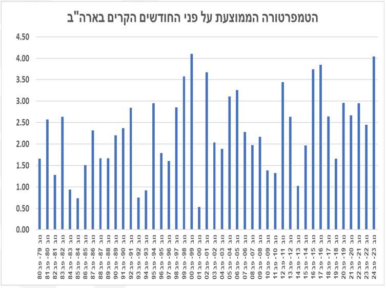 גורם ראשון: מזג אוויר חם יחסית לתקופת החורף תמך בצריכה ובפעילות כלכלית חזקה יחסית לעונתיות. באופן ממוצע החודשים הקרים יחסית בארה"ב (כל המדינות כממוצע) הם נובמבר עד פברואר בכל שנה. במהלך התקופה האחרונה נרשמה בארה"ב טמפרטורה ממוצעת של מעט יותר מ-4 מעלות צלזיוס על פני חודשים אלו- הטמפרטורה הגבוהה (או יותר נכון, הפחות קרה) לתקופה זו מאז 1999-2000. יתר על כן בחודשים מסוימים הטמפרטורה היחסית ל"רגיל בעונה" הייתה גבוהה במיוחד ושברה שיאים של המדידות הקיימות בעשורים האחרונים, כמו בדצמבר 23 (שיא לדצמבר של העשורים האחרונים), או בפברואר 24 (השני בגובהו לפברואר).